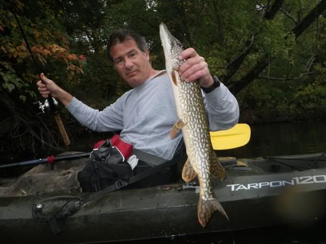 I hit the river this morning for about 90 minutes before work and the bite was just insane. I landed double digits on pike and had a few nice pickerel in the same stretch. Only one pike was under the 30" mark with all the rest being quality fish in the low to mid 30". I don't even want to talk about the couple that I missed having them next to the kayak, but the bigger ones just don't like getting handled from the kayak to get a good picture.