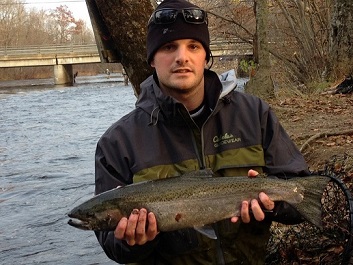 Nice fish!! I was up fri and sat with not much luck but happened to land one brown. Was wondering what part of the river you fished? Im assuming upper?