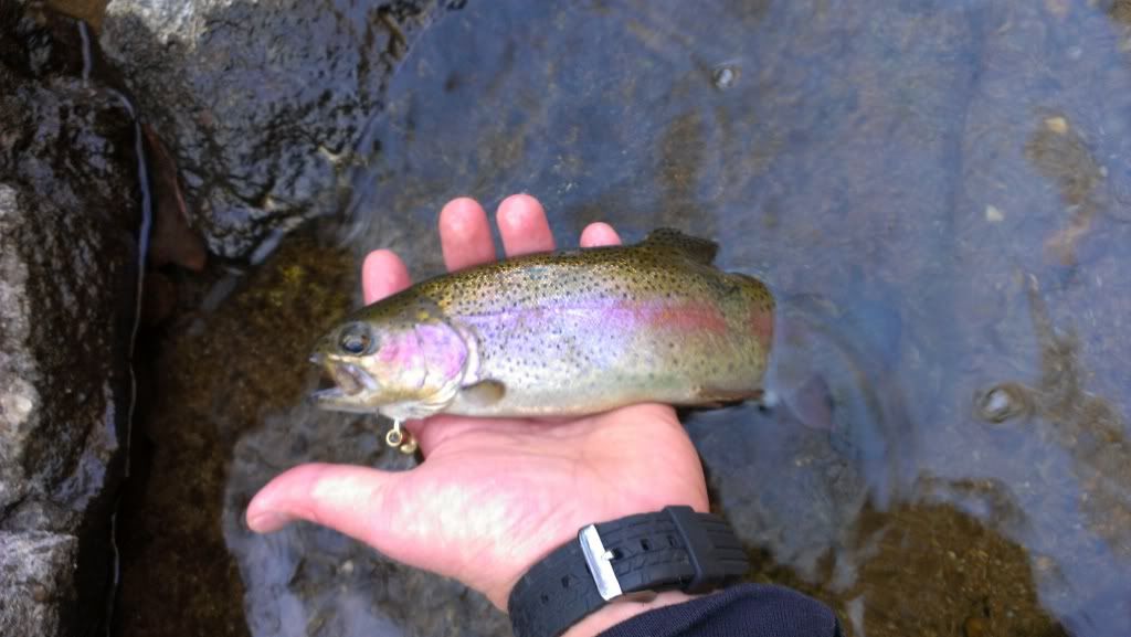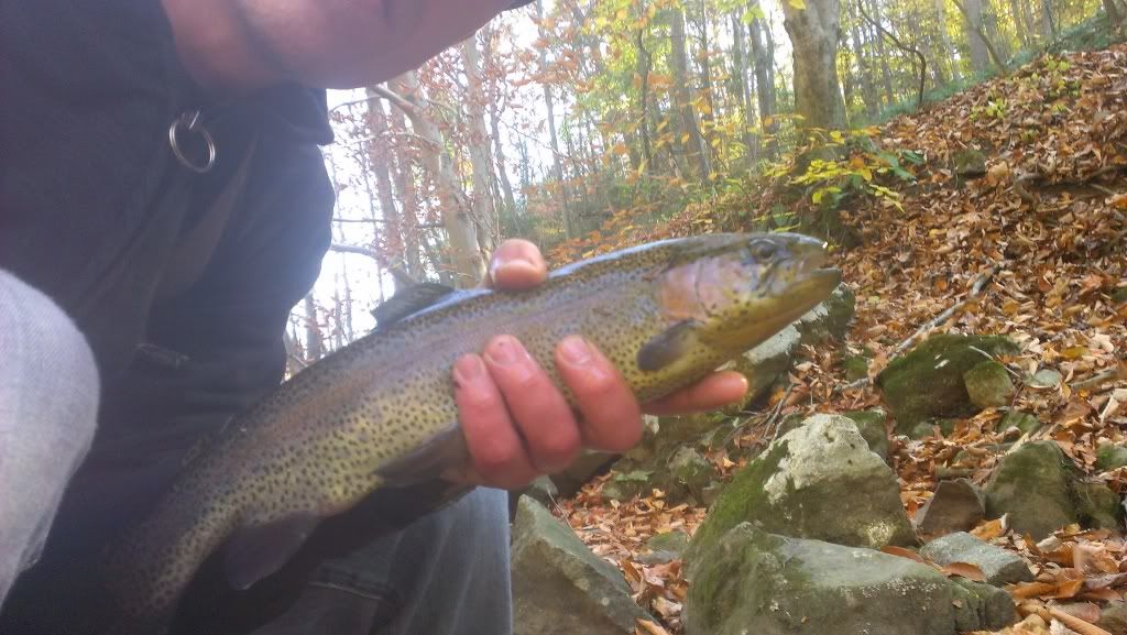 Wasn't as productive as my last trip but well worth it anyway. Also saw a beast of a hornet!! Had to be 2" long and I almost walked right into the damn thing!!! That would've been bad, lol.......Second trip was some early mornin fishin on the pequest today. I've been wanting to hit some new water and I had never been there so I explored around a bit. Found a good spot and walked a good 1-1.5 mile stretch and picked up 3 decent fish, all bows. Def a nice morning out, not a single other fisherman until my walk back. Here's a couple of the fish, and some bonus wild life, lol...... ![]() ![]() ![]() ![]() ![]()