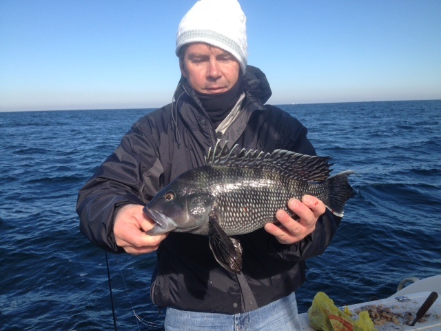 We were experiencing the same tough togging that it seems a lot of guys were yesterday, so down went the clams my buddy brought along. We boxed up a bunch of seabass and porgy along with the 5 nice tog that were already in the cooler. Clams saved the day.