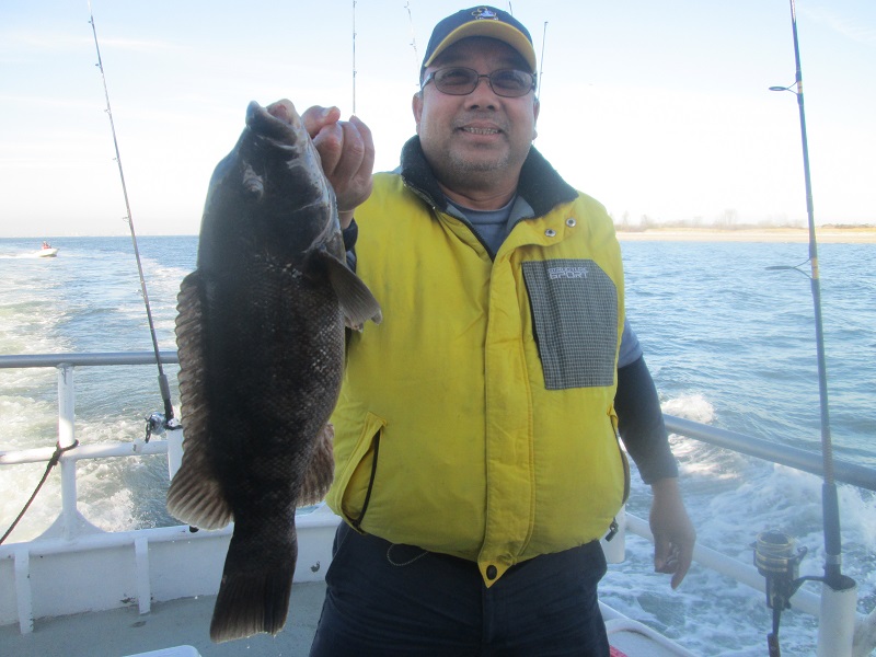 How about too nice of a day for togging. You know when they bite, when the NW wind blows and the temp. drops. When it is nice out and the people are down they get lock jaw. We had some fish in most areas and most were keepers but you caught what was there and that was it. Edison Fanijalan from Jersey City had a 6 pound pool fish. Green crabs were the choice bait today.