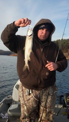 After thinking about all the advice from you guys about Delaware river and walleye fishing me and my cousin decide to try round valley for the first time. We got too the bait shop around 6 only to find out they open at 8 so we went to get coffee. After we got bait we headed to the valley and got on the lake around 7:30 because the guy opened the bait shop little early, the guy was great help about what to use and other advice. Put the boat in and went to park the car, while heading onto the ramp I slipped on ice and bruised my knee, what a way to start lol. After all that we went to a first stop cast out shiners on one side and I cast out a binsky in about 60-70 ft of water and caught my first 17 in. lake trout ever. Then about 20 min. later my cousin used a gold binsky and caught 2 15 in rainbows. Lost a bunch more on binsky but not even a hit on bait. I love using the binsky now an love catching that lake trout I hope I catch more. Had to leave around 12:30 because the lights were blinking I guess because of the winds. Beautiful reservoir and I took the trout for the family, but ive never seen meat that pink like salmon. Never taking them again because fishing is a hobby and these fish are too nice.