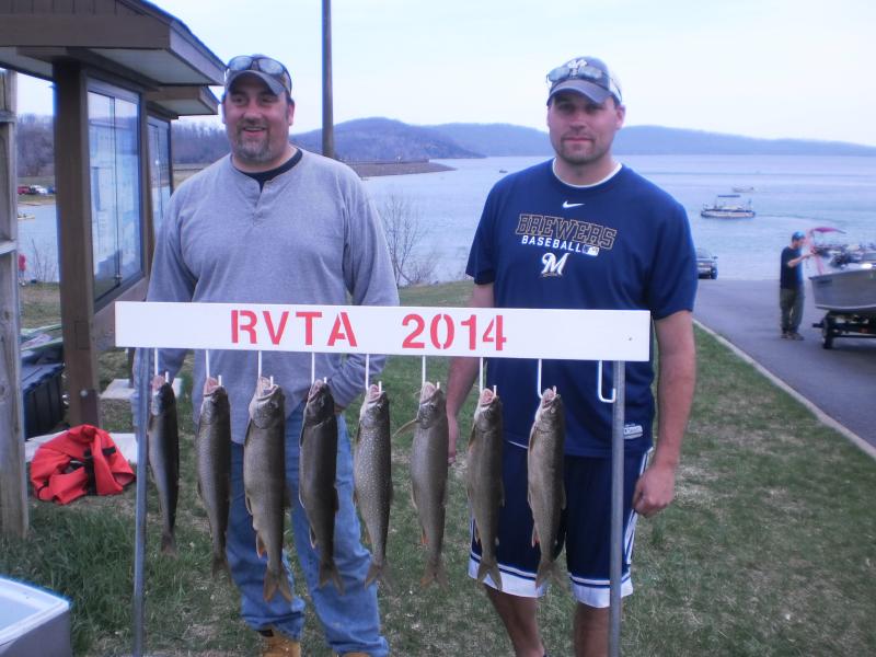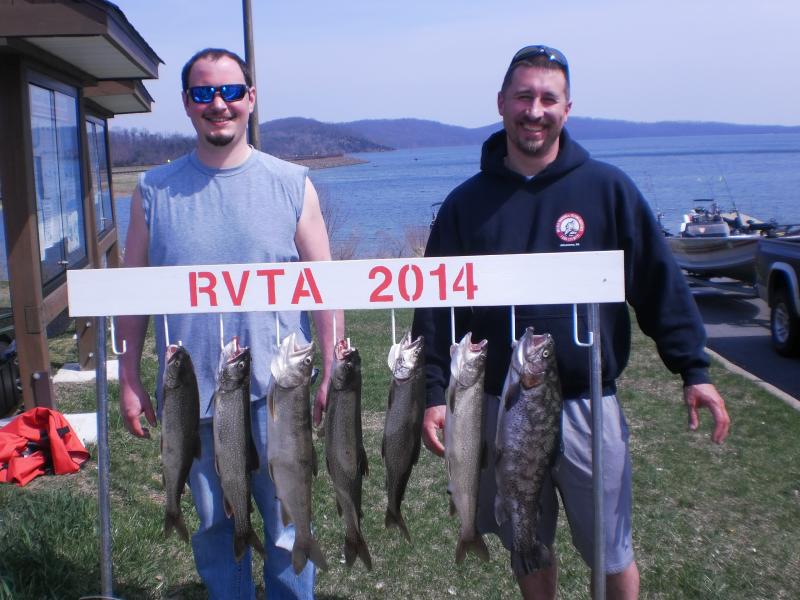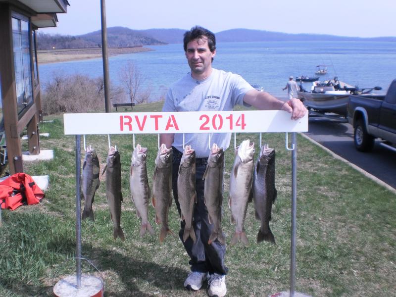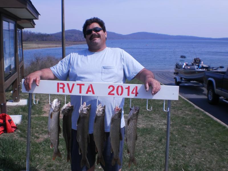 The Round Valley Trout Association has a fishing tournament this Saturday, May 10th, 5:30 AM-2:30 PM and all are invited to get in on the hot fishing action. Entry fee is set at $20.00 for members and $25.00 for non-members,with an 80% payback. There are 6 places to finish and win. 1st, 2nd, and 3rd place for the largest lake trout and 1st, 2nd and 3rd place for any other species of trout. You want to learn how to fish New Jersey's premier trout lake? Then join us Saturday and mingle with a great bunch of guys with years of Round Valley fishing experience. Attached are pictures of a few of the guys in the first contest on April 13th of this year with their fish. Over 50 contestants in our first contest.