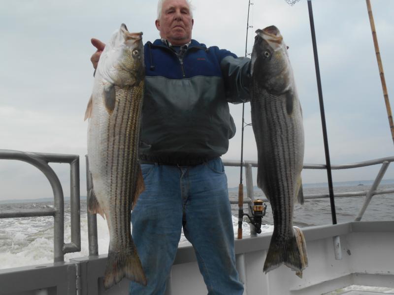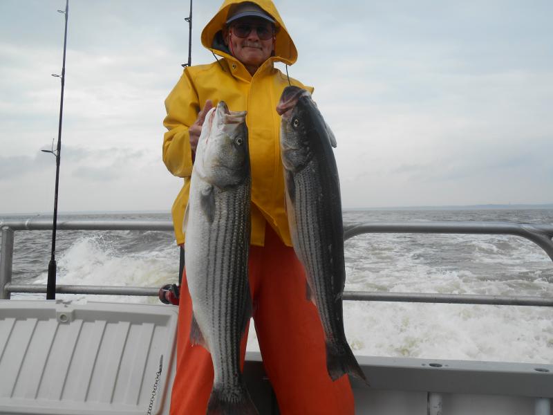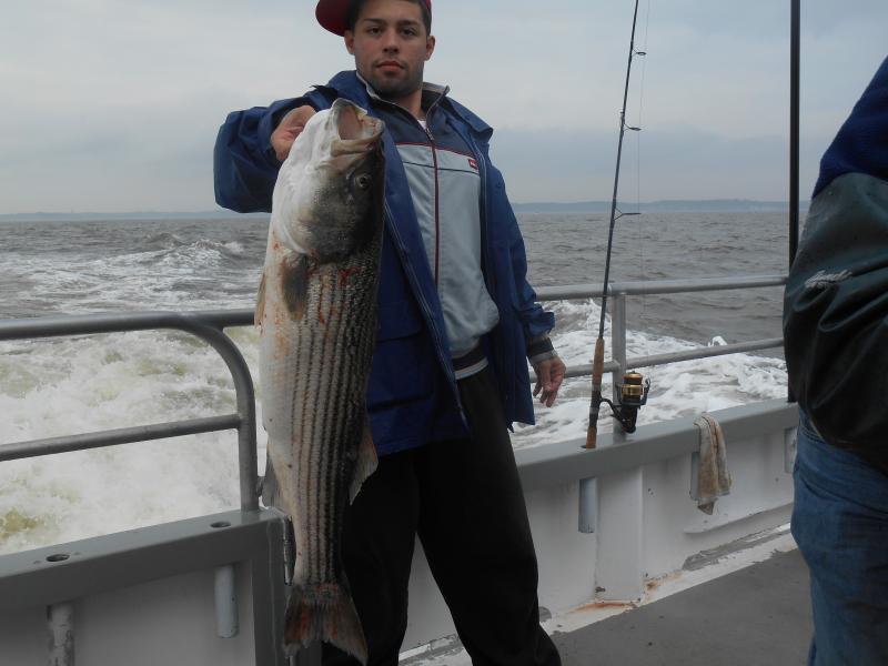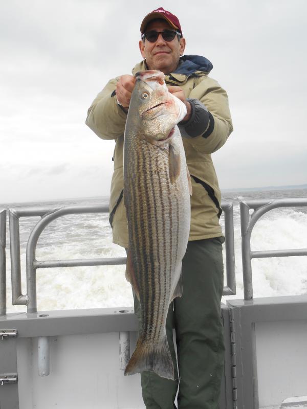 Hey gang, Capt. Scott here. Me and Devon had the Prowler5 out today with a light crowd of 13 anglers. We had some nice bass in the boat with some limits up to 22-23 lbs., into double digits keeper ratio with good short action. The bite was on the outgoing tide. Today's pool winner was Ken Steinberg of NYC with a 22lber. P.S. Bring the raincoats tomorrow, we'll be lighting up at 5:30. Pictures and pool winner in a little while. It was definitely a striper kind of day out today. Thx., Capt. Scott