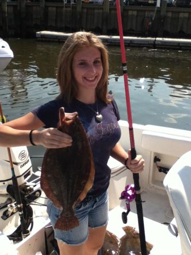First time on a Party Boat (SeaHunter) my daughter nails this 8 pound fluke, sweeps both pools and gets her name in the Star-Ledger. More importantly it seeded the passion that she still has. She caught the big one at age 7 and is still out-fishing me (that's easy) 13+ years later