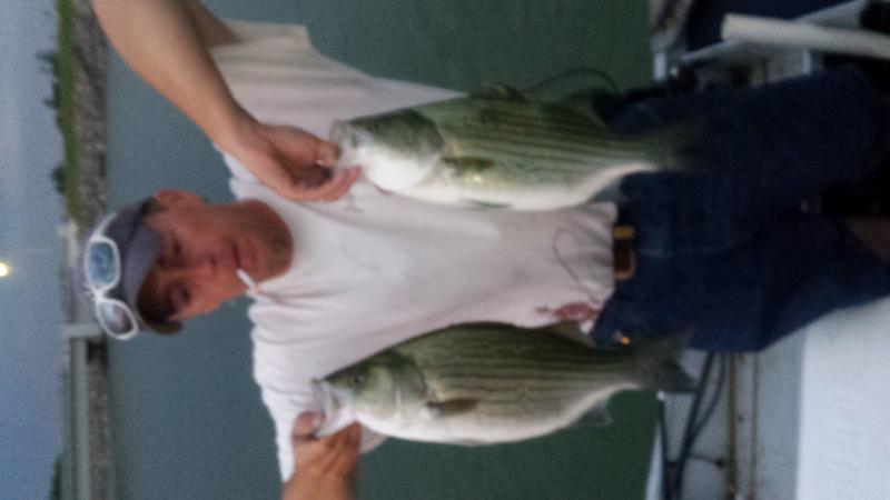great job boys, the wipers are def in full summer mode up here too. Nothing beats a school settin off all the rods, total mayhem. Ur scale is pretty close, most 24-25" fish are around 6lbs, they look and feel much bigger but its the thickness that bulks them up. Come fall the 6'ers turn to 8's w the gut on them, those monsters that are 9-10lbs on LH are 26-27" inch fish and fat, they look like swollen footballs theyre so thick and beefy