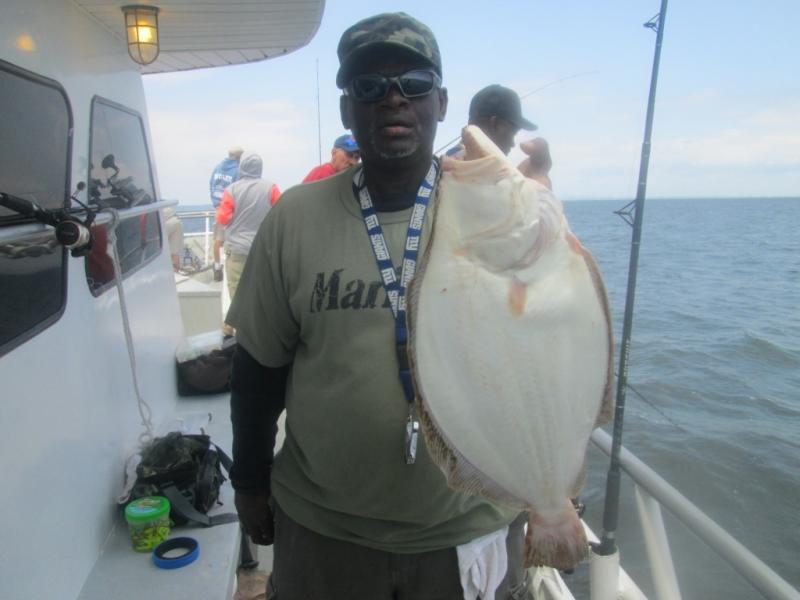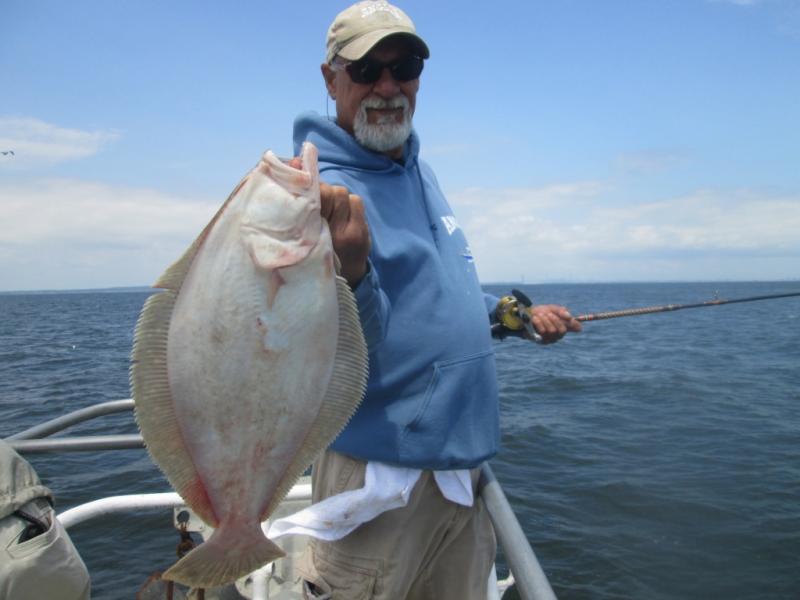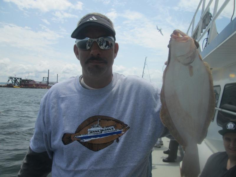 The fishing was nothing like yesterdays with only a keeper or two each drift and a few shorts. No doubt the NE wind hurt the drift and the catching. Conditions mean everything in fluking.Greg Szeremeta from Hillsboro had a 7 pounder to take a nice pool. Cigar Bob kept his no skunk on the Angler streak alive with 2 keepers.