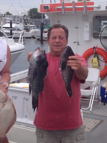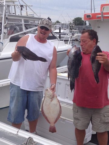 Saturday July 19 We had Sammy group out for some fluke Seabass n ling. it was a pick all day. Catching some real nice fluke and some big sea bass .. We fished a different area today and it paid off for us. The guys even got to catch a bunch of small blues n a big cow nose ray. All in all it was a great day on the ocean. I even got to see my old boat . The original Parker Pete