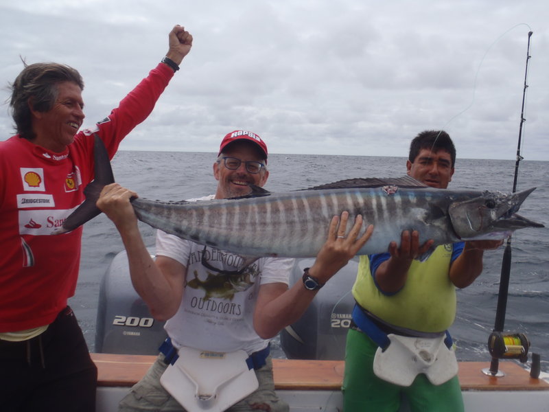6 Wahoos from 30-60 lbs. My wife Sharon caught the biggest which incidentally was bigger than her! Also 3 small yellowfins. Ate some that night at a restaurant on shore....unbelievable! For anyone who has a deep appreciation for the diversity of life, the Galapagos Islands is a MUST on your bucket list. Snorkeled with Galapagos Sea Lions, Whitetip Sharks, all sorts of reef fish. Observed blue footed boobies, red footed boobies, waved albatross, marine and land iguanas, the famous tortoises, and of course dinner and lunch with Darwin's finches that sat on our table and chairs with no fear of us. A remarkable trip I will take with me for the rest of my time here. Fish caught at Punta Pitt offshore of the island of San Cristobal....Enjoy! Capt. Dave