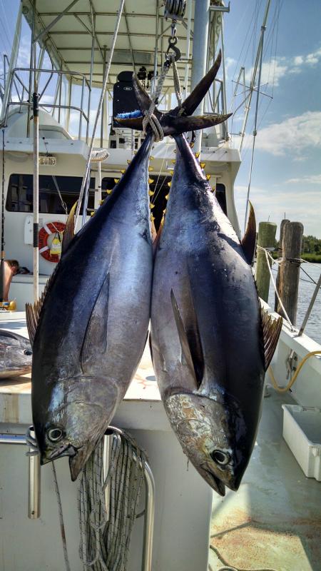 Team head hunter was on the meat yesterday with their overnight canyon trip!! Came in with 6 longfin tunas and 2 nice size big eyes! The big eyes weighed in at 180 and 210 lbs each.