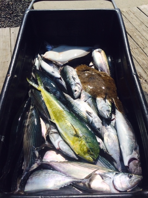 For the day we had somewhere between 75-100 bonito, kept 45 or 50, and had the 1 mahi and 2 fluke. We also donated a handful of the bones to Clark's Landing "Fishing For the Cause" fundraiser for breast cancer awareness. It was a great day with awesome weather and a great crew!!!!