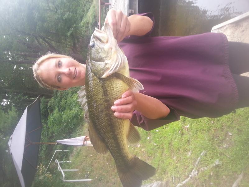 BAM! She hooked into a 5 lb 19 inch largemouth.