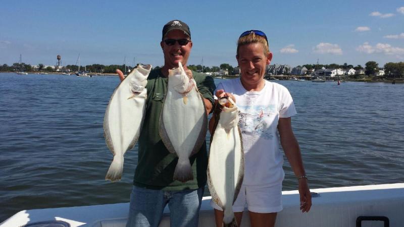 Today aboard the Down Deep 35' BULLET we had a charter for Donnie and Laurie. Well it was another great day of catching and keeping, albeit fishing thru some strong current. But the crew got it done with Fluke up to 6 lbs. Thanks for sailing with us, it was a pleasure having you aboard.