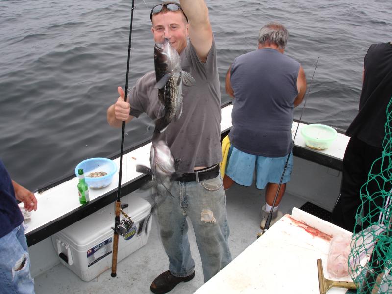 Today we left from our N.Y dock and had a charter for Tazo and the boys for a day of Sea BASS fishing. The first few drops was a mix of shorts and keepers.We were not happy with the size so we took a steam to a few wrecks a little deeper and the big units were home. It was pretty much drop and stick for a while.We also had a nice trigger and a small Blue. On the way in we made a drop for Ling and it was just a pick on that drop but had a jumbo 3 lb plus Flounder (released). The charter had full boat limit of big Sea Bass for the day.