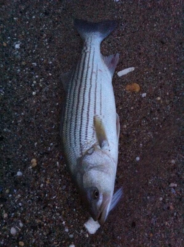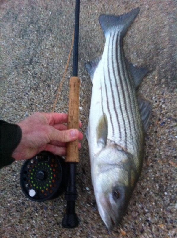 I've been fly fishing for stripers all September and October, Been doing pretty well right off the surf using a white snake fly. Most mornings have been productive catching a fish or two. The best days have been during the NE wind or East. most of the fish have been between 24-27 inches.