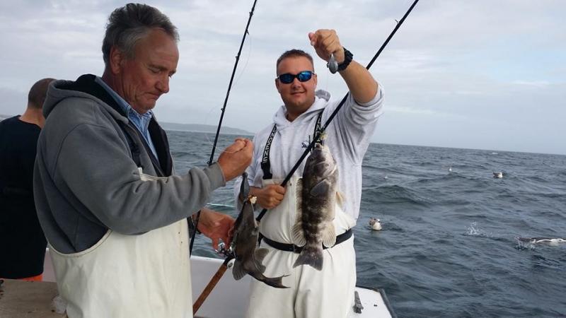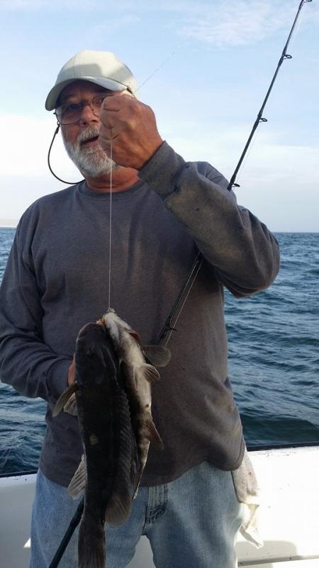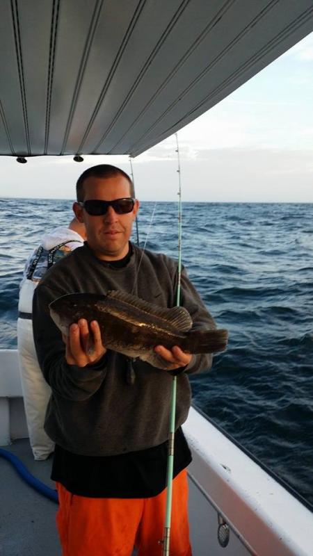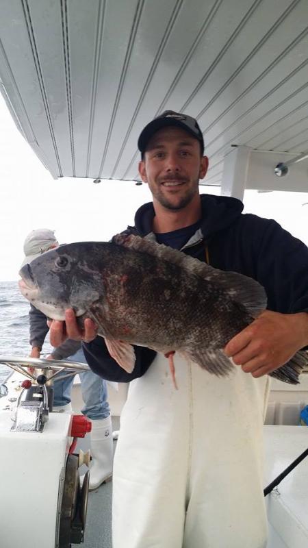 Was a little apprehensive last night when Capt Chad said we are going to give a try today, but what the hell, he knows better than me. Left early and it wasn't very bad going out, an occasional big wave but not to bad. Set up with a heavy bergall bite and it didn't take long to get them going. Tog after tog with a few triggers and sea bass mixed in. Almost all keeper size. Nothing big but nice sized fish. Mate Jay had the biggest at around 7#. Threw back many nice fish today, including all the bigger ones.
