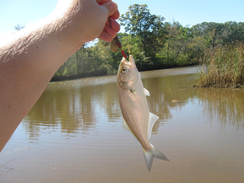 I was fishing the Manasquan River below Bryce Park hoping to get a sea-run brown trout. When I saw the flash of silver on the end of my line, I thought I finally scored. Until I pulled this guy out...