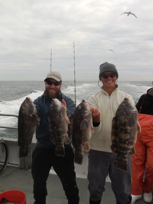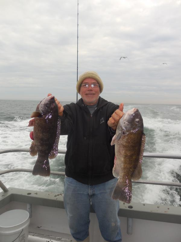 Hey Folks, We were out today with a nice bunch of people onboard and we headed to the tog grounds. We had ok fishing today it would have been better but we had no anchoring conditions half of the day. All in all though it was a nice day to be out. We will not be lighting up tomorrow with the forecast and we will let you know about Wednesday. Dave Pybylowski from Highlands, NJ was our pool winner today with a nice size Tog.