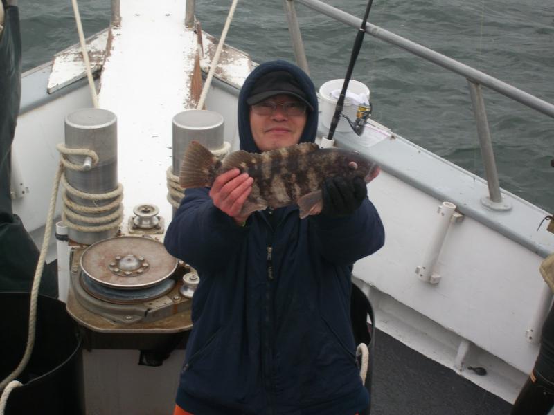 Right from early morning , it was pick and pluck with togs coming over the rail between the keepers and shorts, it was decent action all day, by one o'clock 5 people had their limit. The pool fish was 7lb 1 oz. , we lost a big black fish next to the boat, could not get it over the rail, it was over 10 lbs.