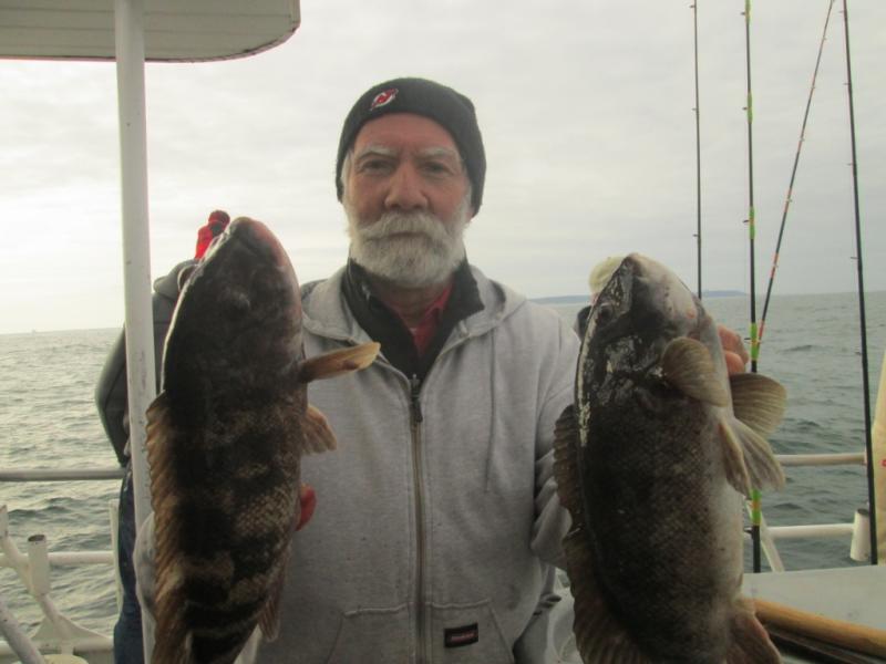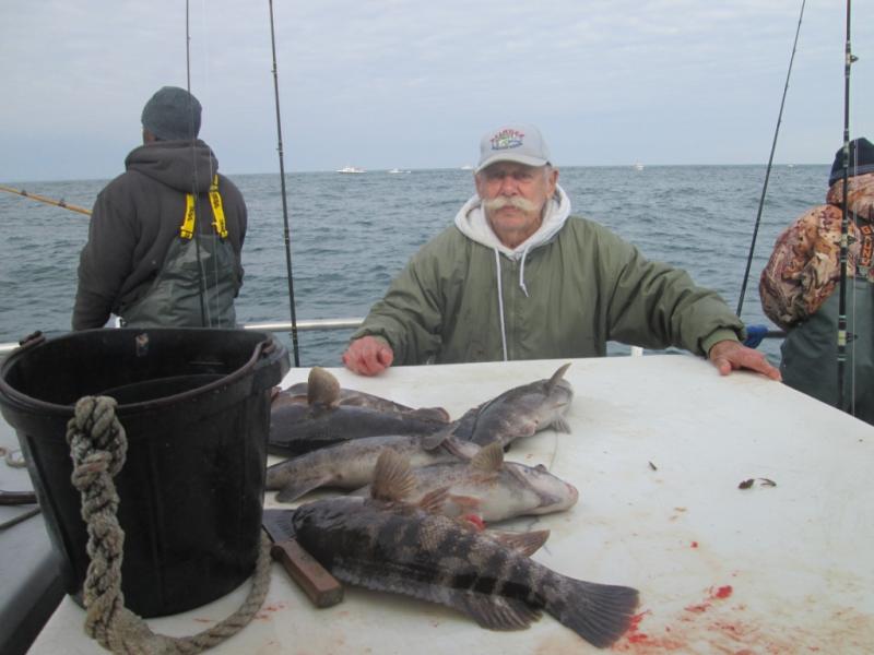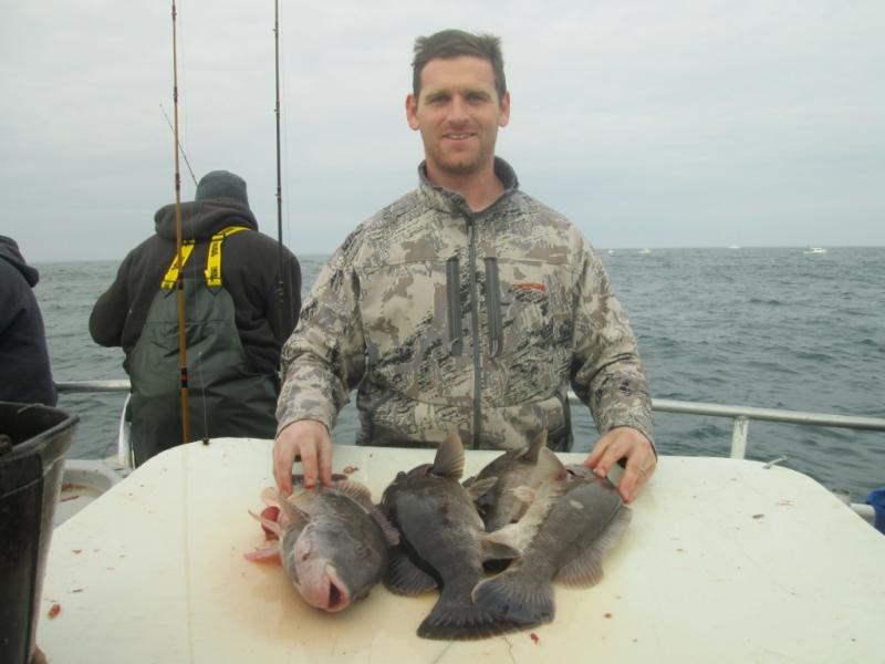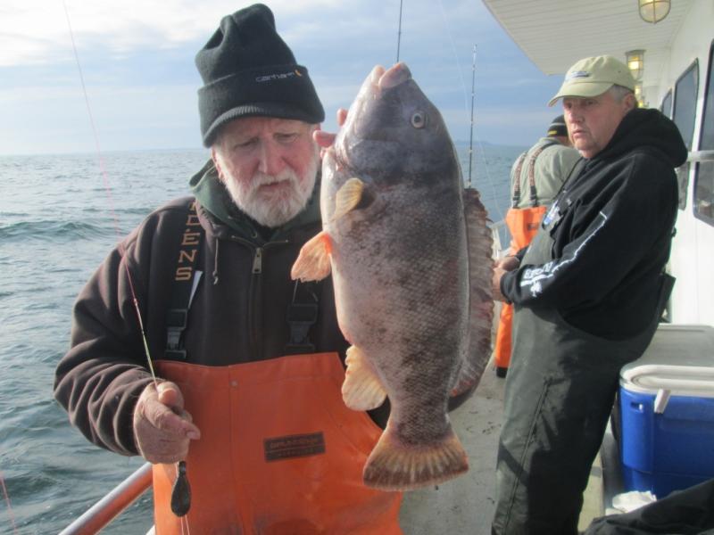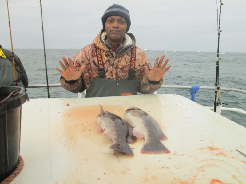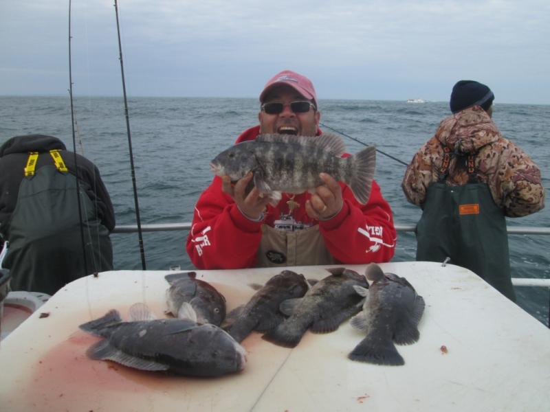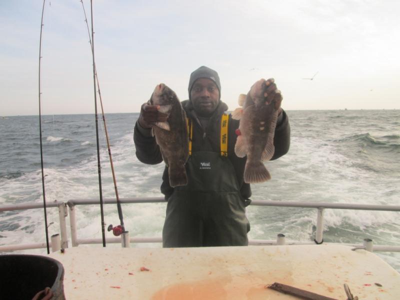 It was some nasty on the ride out and a god part of the morning but the tog were hungry and we had good fishing all day. Staten Island Mike took todays pool on the last drop. Some first timers had 4 or 5 keepers with limits for some regulars. I hope to be back by the weekend and the fishing stays good.