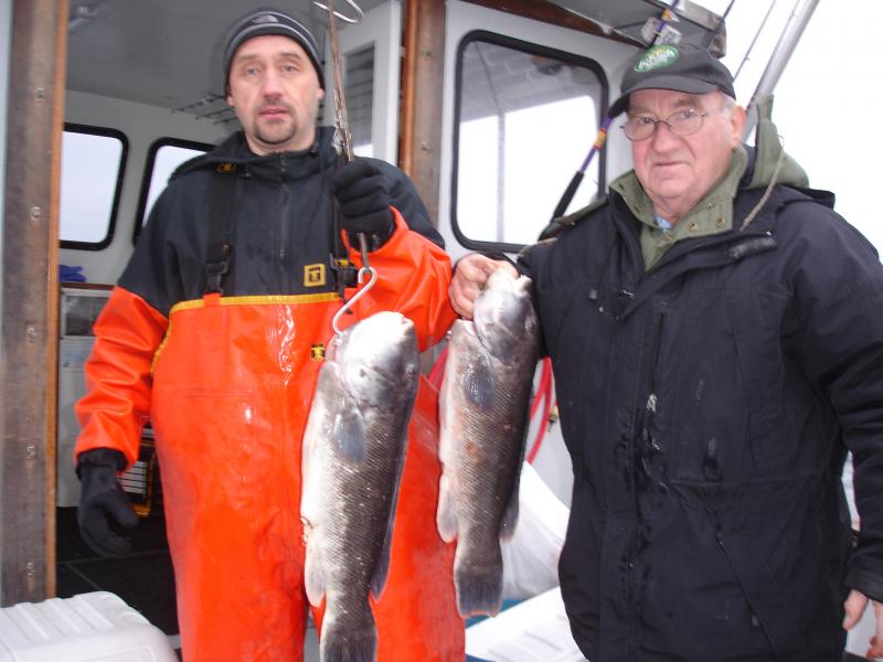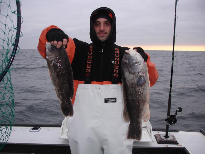 We ran an open boat Tog trip today and had to make several drops to put a catch together. It was a pick on some drops and others were stiff. Danny was putting on a show today catching 16 keepers (orl) , Brett had 8 (orl) and Ron had 5, everyone else down from there. The pool fish today was around 7 lbs and was caught by Danny.