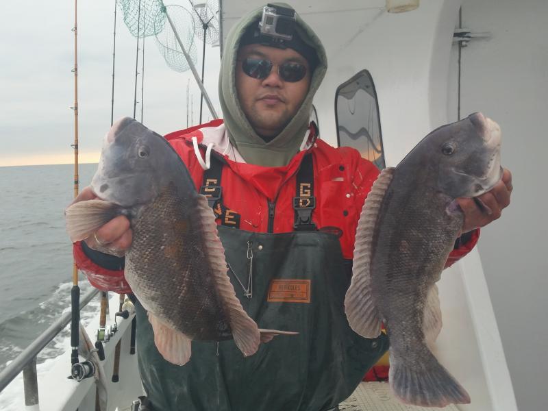 12-21-14 We pretty much had similar conditions to yesterday,,flat calm,,north tide again and a pick at the fish...Lots of small fish again and you had to weed through to get some keepers,,Some did not,,some did,,I do wish the bite was a little better for more of the people onboard,,Hopefully tomorrow we see some of the bigger fish chewing,,,High hooks had 5 keeper togs,,,,and pool fish was only around 4-5 lbs,,but it was worth a nice amount!!!Check out some pics,,see ya in the morning!!