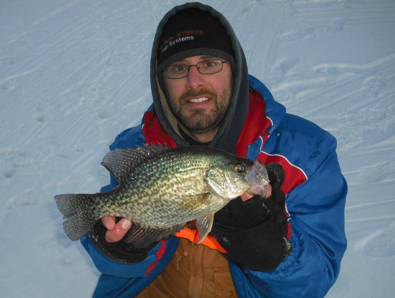 been after them for a while now through the ice and 20 minutes in i was hauling in a heavy thumping fish (i thought catfish) then as it got to the hole the striper jet rocketed sideways and popped the hook off right on the bottom rim of the hole...i almost frisbeed my tipup across the lake but then i realized ok, you just started maybe you finally found their secrets...nope, that was the only shot all day between 3 of us!well besides that it was a great day (unfortunately stripers was my primary target) I did get my secondary target though some jigged up big schooling crappie that hit as the sun was going down, and nailed a nice almost 20in largemouth, some big pickerel to 22in, a sa 13" perch, and a sa 9" sunfish on the jig. the fast and furious crappie action on the little jig pole was the best, biggest one was 13" but my friend got a 15.25" on tip up and he also got plenty of perch, catfish, and smaller bass. pretty banner day after the heartbreaker to start it off. |