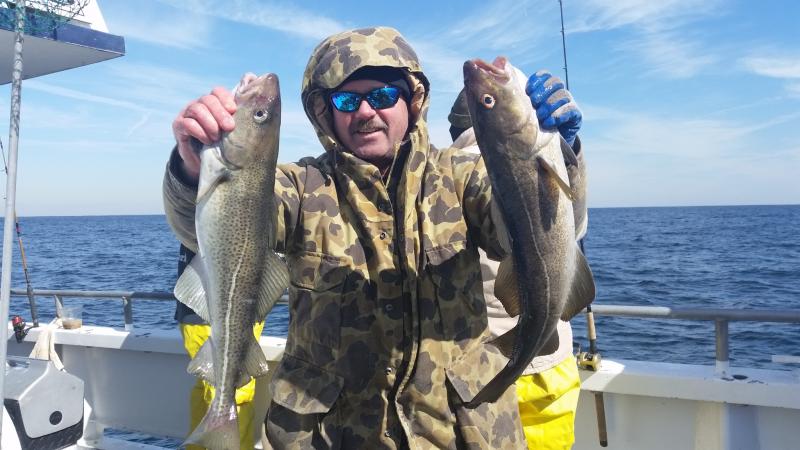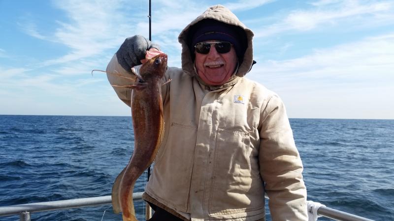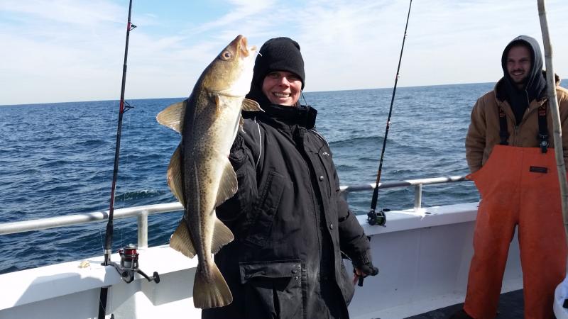 2-28-15 It was good to be back out today,,ocean was beautiful....Tomorrow is looking even better with light winds and no rain until late afternoon so we are good to go...Fishing was what is has been,,some spots you see some codfish,,,some keepers some shorts...other spots were dead and we would move on....few ling here and there,,,a few sea ravens,,some perch etc...nothing exciting but some of the guys had some nice eating fish to take home including Mike who won the pool and had two nice keeper Codfish for himself...(oh and Raina who also had a nice Codfish)!Congrats to Pauly who took home the seasonal!!!See ya in the morning for coffee!!!