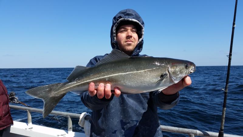 3-23-15 The ocean was very cranky this morning,,,blowing hard not like the forecast called for..I would have canceled if I knew it was gonna blow 25-30kts...Well we did make it out there,,seas were not that bad just lumpy,,,,fishing was off today,,not a good bite like yesterday,,few small codfish here and there,,,,couple of keeper pollocks,,,just not good like yesterday....Read the fish a few times,,,,looked good but they were not in the mood,,,,,Oh well,,tomorrow is another day,,we are heading back out in the morning to see if the slobs are ready to bite again!!See ya for coffee..pics