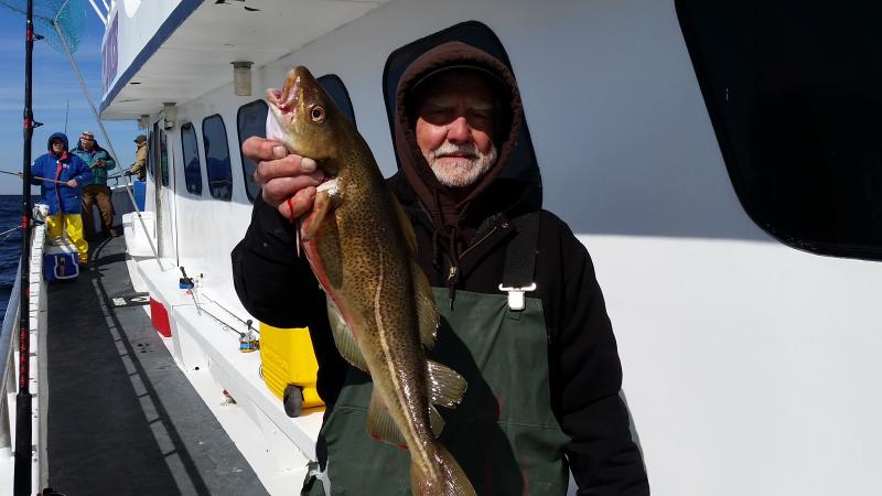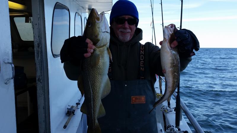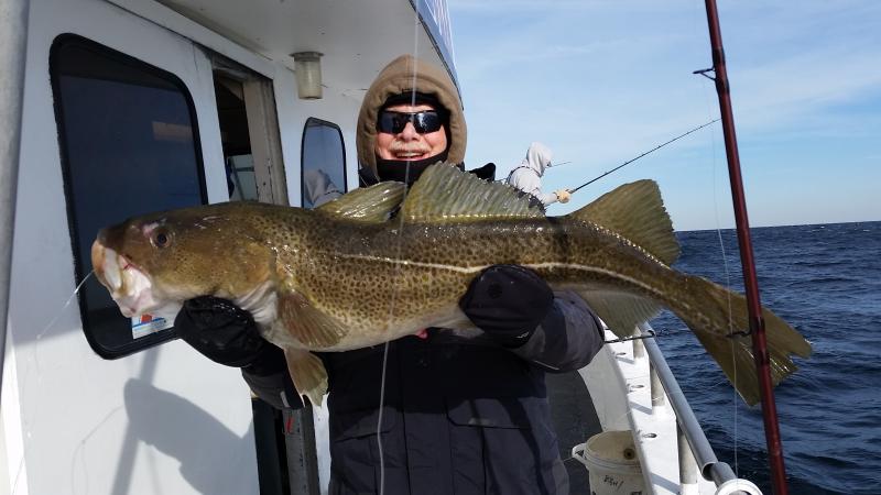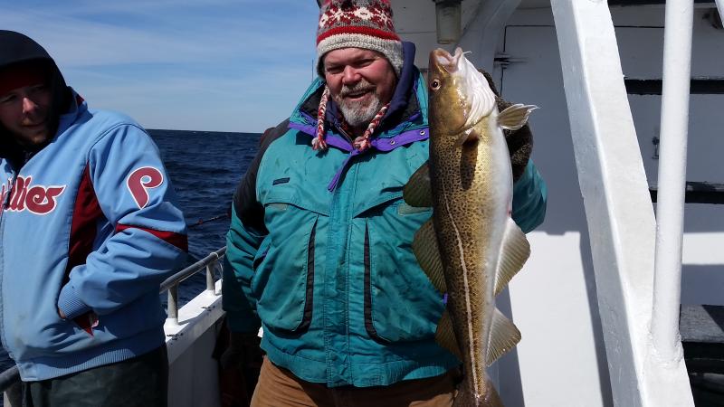 3-19-15 Pretty nice day out there today for the most part,,,a little lumpy in the morning but a nice ride out....Dogfish seemed to slow the bite down for us ,,have not seen many this winter due to the cold water but some did move into the area today,,,they seem to come and go at spots we stopped at....We caught some codfish but not good,,,some keepers,,,Herbi had two nice keepers and a ling including his Jumbo he nailed in the morning..Fish was caught on a clam with a gulp chartruese swimming minnow..Some others keepers here and there but guys did get the skunk or some shorts....Still a nice day despite the dogs,,,,We did catch Cods on jigs but seemed most were small....The dogs were even hitting the jigs so they definately hampered our catch..Check out some pics below and nice fish Herbi!!!!Tomorrow we are not gonna fish,,got snow and rain and nasty stuff coming so stay home..Saturday looks like the next nice day to go,,including Sunday!!!
