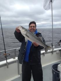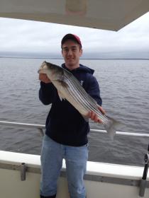 had the first keeper and pool winner. We didn't set the world on fire but everbody on board caught at least one fish, even yours truly Some short shorts, mostly fish that will be slot fish in September. Good fun!We saw a ton of bait and life, good readings on the sounder, gannets all over. The bay is a ticking time bomb and as soon as the water temps go up a little bit the fishing is going to explode. Tomorrow looks spectacular, sunny and 75 in mid-April is as good as it gets, not to mention it's exactly the kind of weather we need to warm the water. See you on the dock! |