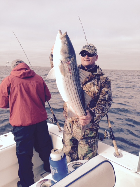 Headed out this morning with the Steve Kline charter. Took awhile to get the bait, but once we got it and set up it didn't take long to get the bites. by 930 we had our NY limit in the boat of 8 keepers to 27 lbs. Took a ride to the other side and tried to chunk, but had horrible conditions. Went on the troll and managed 1 keeper. Total of 9 keepers to 27 lbs for the day.