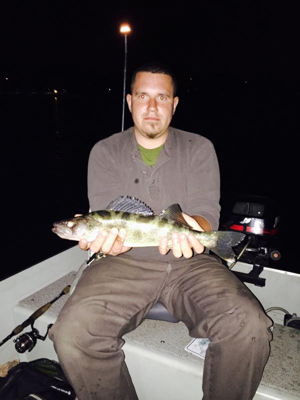 Figured I had my boat for a few years now, I think it was time for me to take it out first night trip and first trip this year on my boat. Got there around 8 and couldn't even get anything to follow. After a few hrs of me getting to know how to fish with the lure I was using I get a nice explosion but loose it. Then my brother catches a largemouth that had to be over 5lbs. About 30 min later I catch my first NJ walleye! Later on in just reeling in my lure when something hooks into my lure and it had to be my strongest and biggest fish to ever be hooked on a lake! I had him for maybe a few seconds and he pulled the drag a little but I didn't have enough time to loosen the drag and snap goes the line. After the line snapped the fish decides to jump, it sounded as if someone my size jumped into the water. So I'm going with a 10lb+ hybrid or a big Muskie. I guess this will be a moment of my life that will haunt me but will be a good story to tell friends and family around the fireplace! Still actually pissed I missed him but hey it's fishing maybe I will get a bigger fish one day! Then my brother did one more cast and caught another largemouth. We called it a night at around 2.