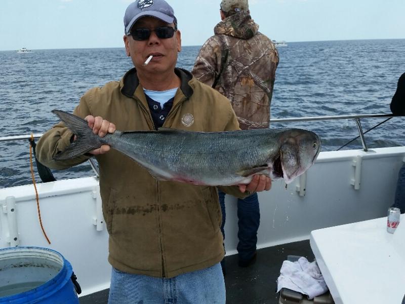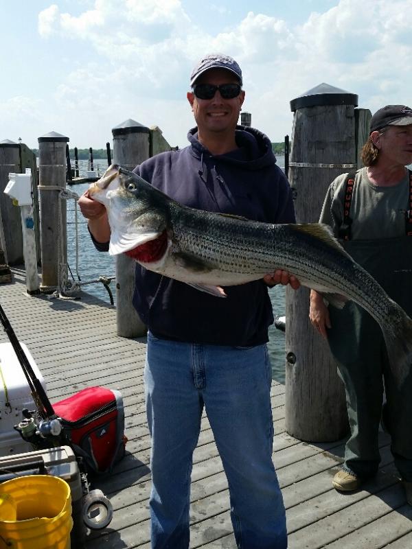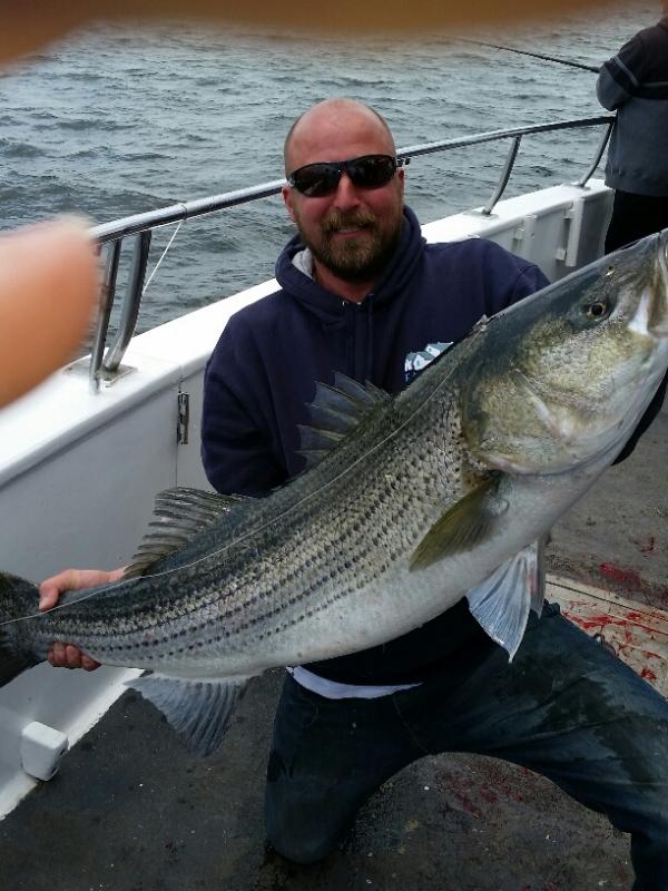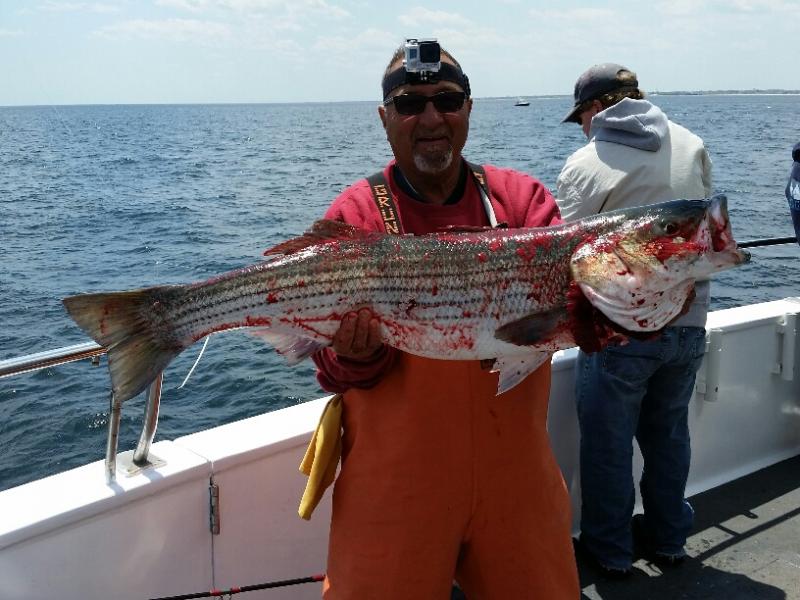 Very good with the BLUES in the morning. Caught BLUES up to 10 lbs. all on jigs. We spent the afternoon catching STRIPERS to 40 lbs. on live bunker. A very good day.