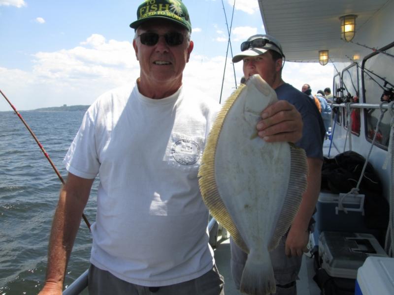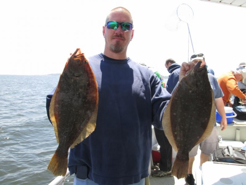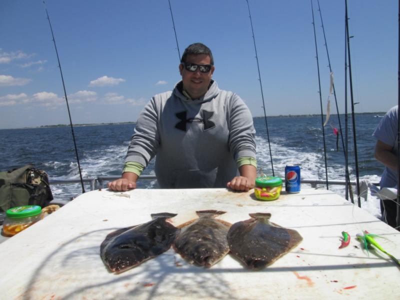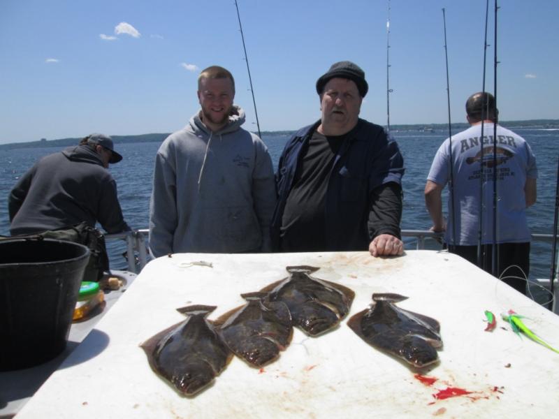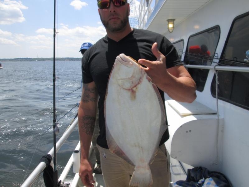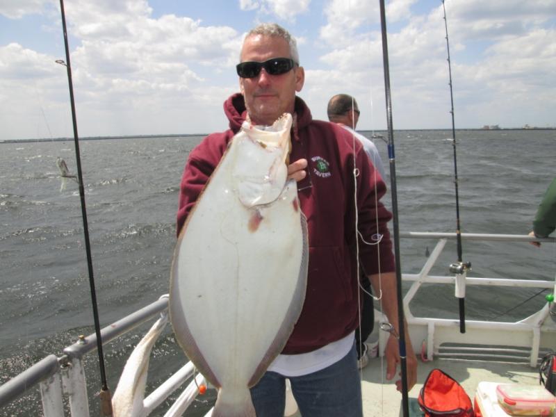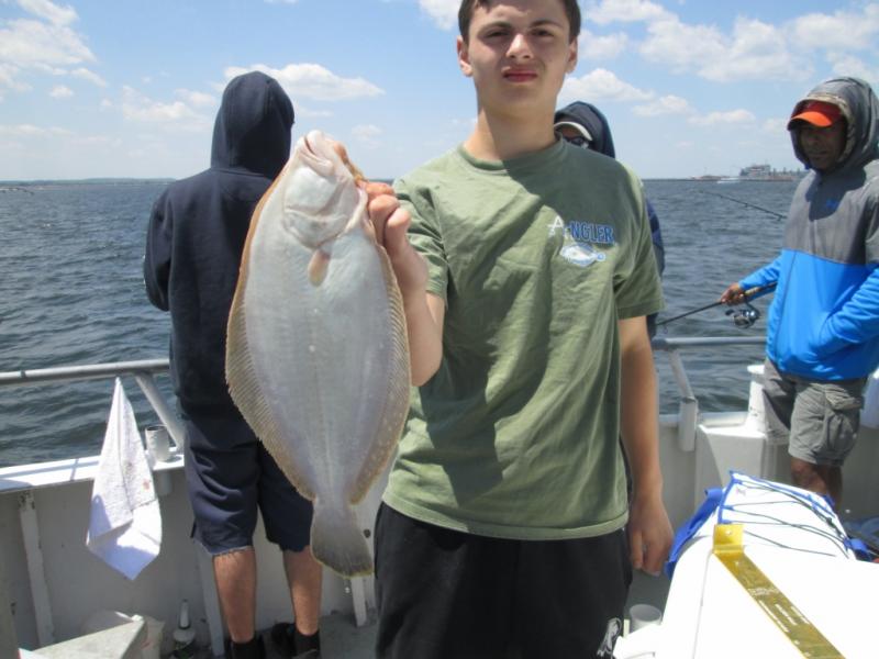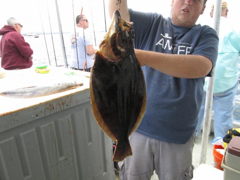 It was sure nice to be fluking. The conditions were tough but we found fluke in 4 different areas and were not stuck by the CG dock. Mark Struck Had a nice 6 1/4 pound fluke for the pool. The stern did best today with Adam leading the way with 3 keepers. A few others had a couple and the bait dragers did best. We had better fishing last weekend when everyone used spearing. Some shorts and birds mixed in but the keeper ratio was around 1 in 3.