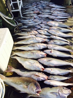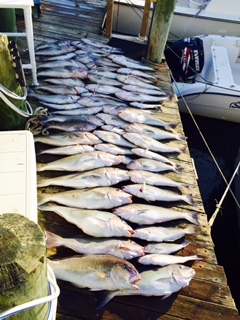 Headed out Sunday morning with a bunch of guys on Russian Roulette to the tile grounds . Little rough on the way out but nothing crazy .Dropped the lines and NO LIFE . Stayed on the grounds for a bit and with all the life around decided to troll for tuna . Lines in the water ,half our later Bam ! A nice Yellow fin . Got him in and decided to try tiles again and it was game on .Stupid tile fishing . 4 guys each had at least 6 double headers .All fish nice size .30 fish over 18lbs . The type of fishing we all like .Drop and reel .If you held it on the bottom more then a minute you get a double header .Epic day .Thank you Cpt.Denis .Great job as always . You do not disappoint AGAIN !!!!!!!