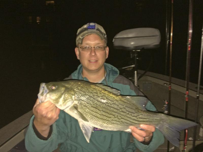 finally caught my first hybrid!! beautiful fish that crushed the top water bait..the blow up was just awesome to see....she weighed in just under 6lbs...CPR'd magic time started at midnight and was still going strong when we called it quits at 2:30am....had 1 other hook up but pulled the hook....must have had 15+ swings and misses. not sure if there were smaller fish that couldn't get the hook or what was going on...certainly frustrating.... tight lines! |