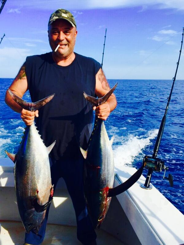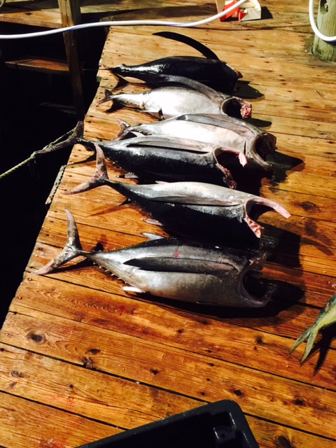 Headed out Sunday night to the deep blue with Cpt.Denis and mate Rob. Ralph , Murray,Chris ,Steve and yours truly .Trolled for a few hours ,first fish of the day a white marlin 60" ,released .Second fish 72" white marlin ,released after quickly taking a few pics .The all hell brakes loose .4 rods go off all 4 fish in the boat .Long fins ,nice fat ones . Half hour later 2 more rods go off ,2 more long fins in the boat . Then we opted to do some golden tile fishing .Got to the grounds and Steve immediately pulls up a 30lber ,got 11 more nice size goldens until the drift killed us 3lbs of led and can't hold it but the Mahi decided to visit us as we were tile fishing so we switched got about a dozen and a half Mahi's and went back on the troll .Crazy life , an acre of dolphins doing acrobatics ,looked like damn blue planet out there .Pilot whales all around we def thought we are in for some more tuna but to no avail .Trolled for a couple of hours and decided to head in .Great trip with a great group of guys ,Thank you once again Cpt.Denis always on the meat !!!!!!