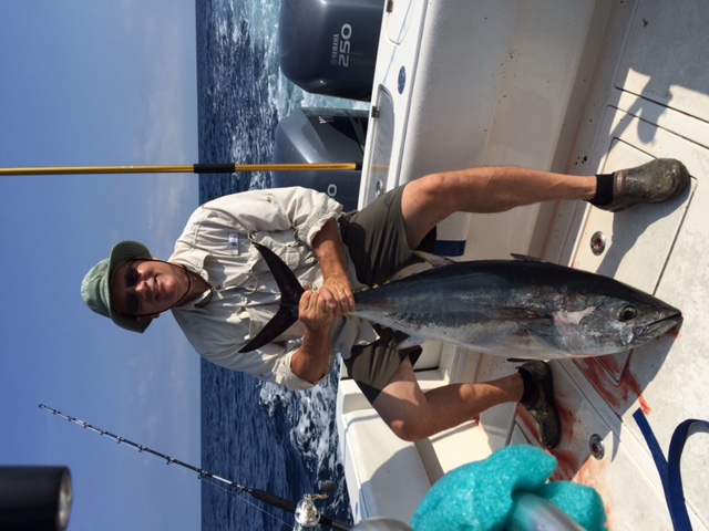 Today we had the Allan Gehringer charter out for some bluefins. This was the first time any of the charter was offshore. Had a beautiful day on the water and managed our 2 unders to 43". Fish ate wwwwb bally and a rainbow splash bar.