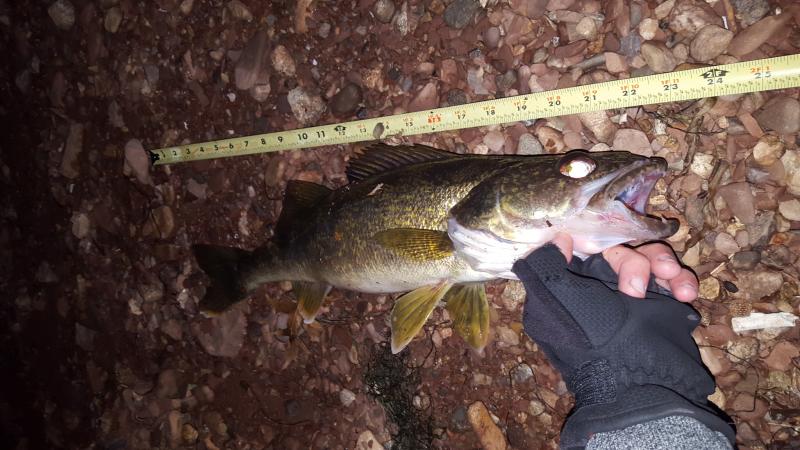 Hit the river tonite from 1130 to 145. Thiiiiiiick fog over the water rendering the head lamp useless. No worries, though. I made due. Tossing soft plastics I managed 3 walleyes from 19-23", another river limit! Had multiple bumps, too, that didn't come tight. All fish were def fat...Fall feed bag is in effect. All fish were also released...love watching them eyes swim away into the depths! Here's some porn... catch em up!