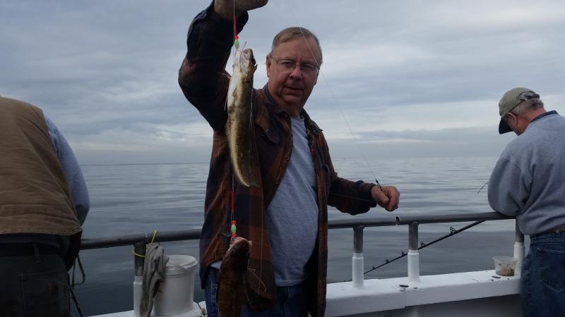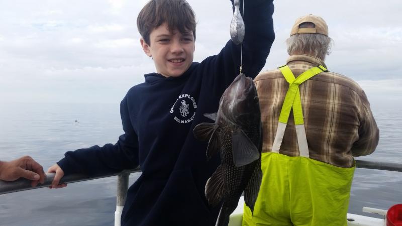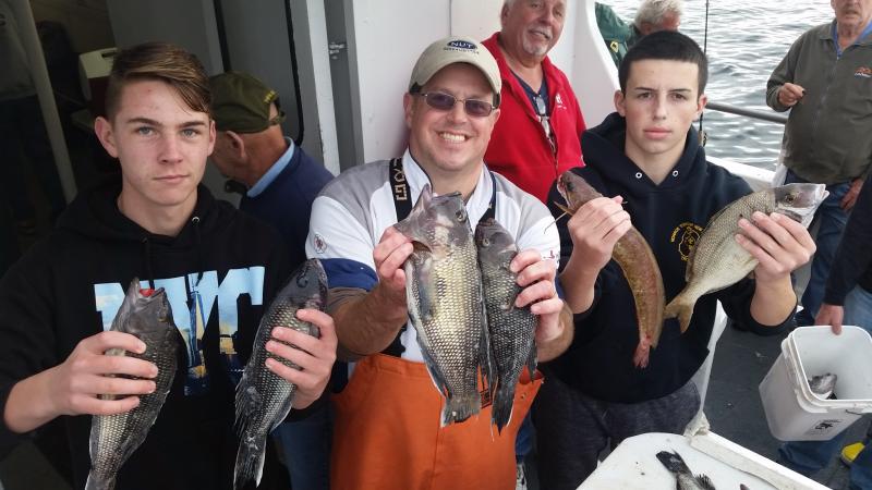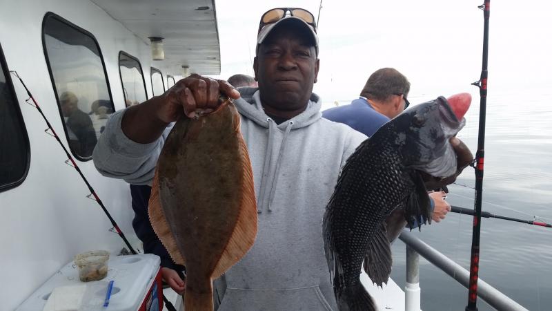 11-5-15 Even nicer than yesterday,,no wind at all.Another awesome bunch of people came out to take advantage of the weather and.We ended up with a nice catch of nice sea bass again,,along with some big winter flounder,,some up to 4lbs..really nice fish...A few nice codfish and some nice shots of ling in the mix as well...No high hooks with limits of bass but alot of people ended up with a nice batch of mixed fish...Some did not fare well for some reason but overall a good catch I thought...Exotics were not as bad as yesterday,,a few spots yes but not as bad..Tomorrow looks awesome again!!We are fishing!!See ya for coffee...pics