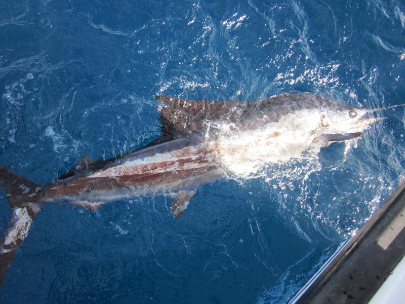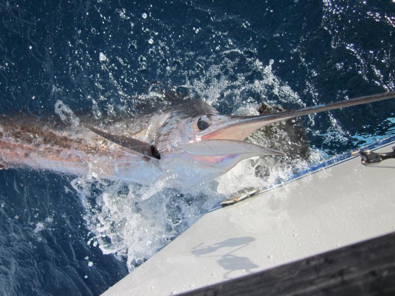Went out with the mate this morning and 6 GoggleEyes, we fished for two hours and came back in. Had one lucky fish who jumped off before I could get the camera, and this one who got an up close and personal view of my hull before the release. Tight Lines --Rich