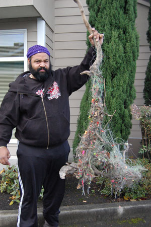 Many fishermen have helped decorate this fishing tree. I've seen others but not with quite so many decorations. It's like a fishing spider's web! Where's your favorite tree or telephone line?