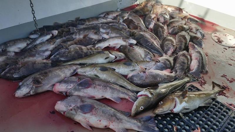 Got to the boat Capt Jerry was up at the inlet checking out conditions. He decided it was a go and what a great choice it was. Very good life shorts and keepers mixed in. Boat limit 12 man and some Cod mixed in. Middle of the day I reeled up to check my bait and whammmmmmm spool scream rod bent over, I thumbed the spool to put a little pressure on what I thought was going to be a World Record Striper. But nooooooooooo apparently a hump backed whale guys saw it on the other side of the boat I was lapped over under the boat. It spooled me and it was gone. Luckily it appeared the hook some how got undone as one angler on the opposite side of the boat caught a small fish tangle in my line. The mate hand line up my braid so thank goodness the fish didn't get tangle up in it. Couple of us with Double Limits (ORL) other with limits. My friend Rob V was the Cod Father with 4 nice size keeper Cod. Damn I love togging