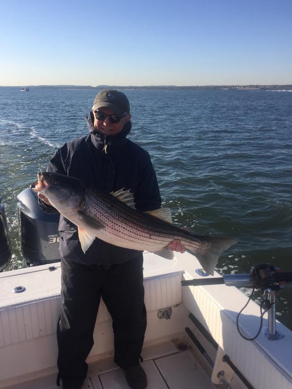 Got our bait early and went on the hunt. Got our limit early landing 10 quality fish led by John's 25 pounder. Set up on great marks and couldn't Get them going on chunks. On way home checked out a new spot and released another half dozen with Adams 30 pounder ending a great day.