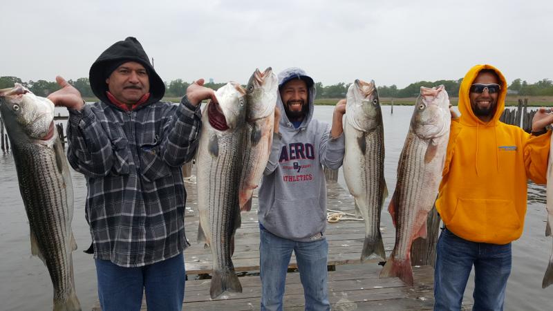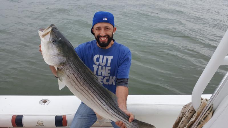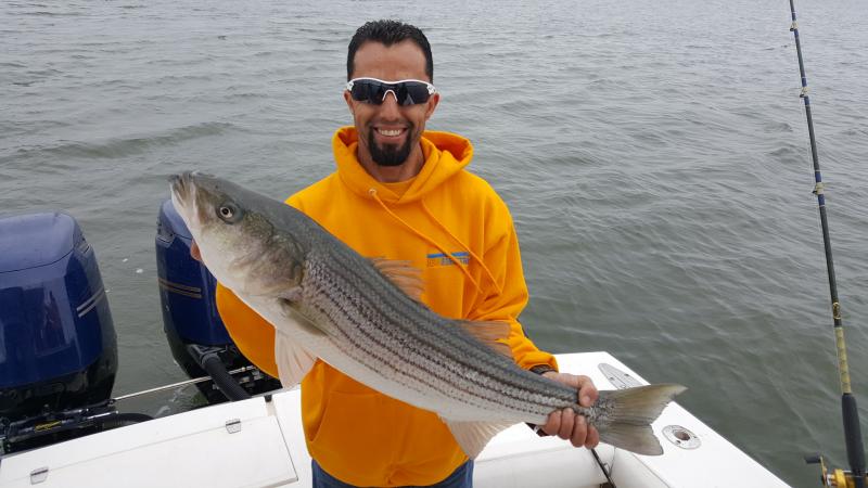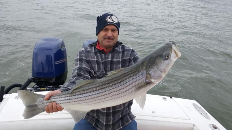 Left the dock and ran a bit to our bunker spot. Scott threw the net a few times before we landed a big net full. A decent run and we started fishing. It wasnt long before we landed a nice striper and a blue. Decided to pick up and run to where we have had good success in the past and it was game on. Great fishing with a bunch of good guys.