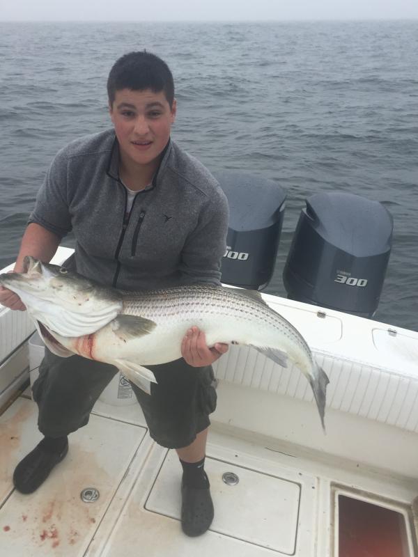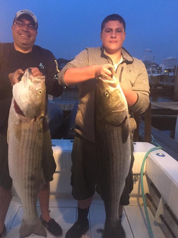 Than favorable conditions and went on the hunt. Had a bite in the first 5 minutes but that was it. Went searching and lots of running around till We found the mother lode of bass that wanted to eat. Had a quick flurry Going 4-8 before heading in. Luke did a great job on the reel landing his Personal best 47 incher. Great to see father and son on the boat again.