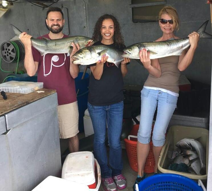 Friday Report Blue fishing was good again today. We had lots of action with six to 12 pound Blues. We saw them on the surface numerous times, and read Plenty of Fish. A-47 Jigs and croc lures both work well The Pool winner was: Cody from Manahawkin nj with a 12lb bluefish. The Big Jamaica is scheduled to sale every day at 7:30 a.m. There will be a night Bluefish trip Saturday night sailing 7:30 p.m. . Striped bass afternoon specials leave 3:30 p.m. Friday, Sunday, Wednesday, and Thursday. For further information call 732-528-5014