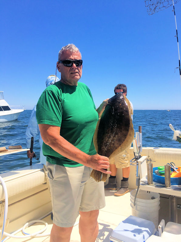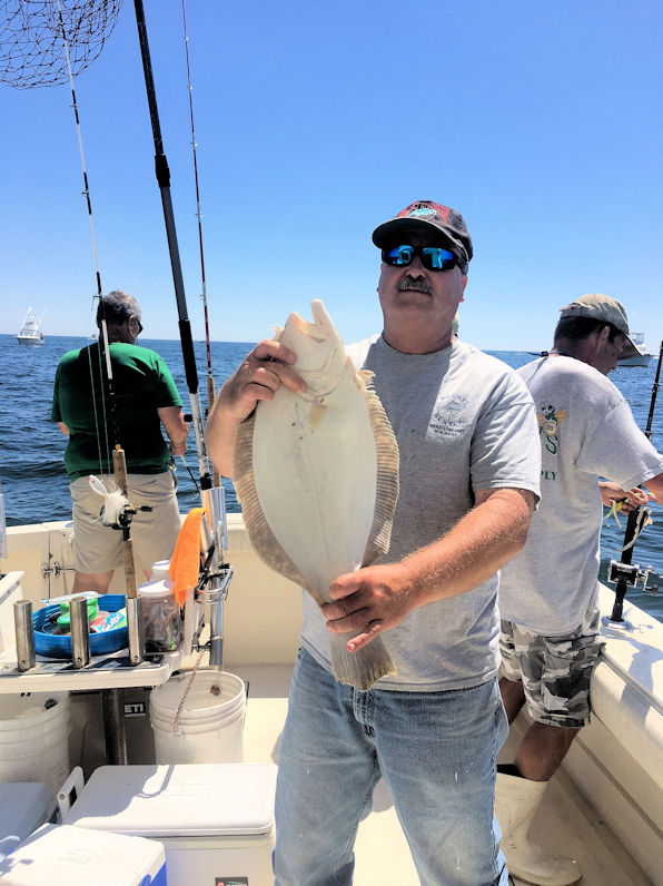 Capt. Paul ran his first July Open Boat trip today. On board we had regulars Mike, Paul, Mark & Dave along with first timer Tyshon. It was a great weather day however we fought wind against the tide and no drift at all conditions for most of the day. The guys gave it a great effort and put together a decent catch of 8 keeper Fluke along with to many shorts to count. Dave had the big fish for the day a nice fat 28" Fluke followed by Mike's 27" fish. We started our Fluke season with a great crew and we are sure they will all be back again. Check the Open Boat Forum for our next scheduled Open Boat sailings.