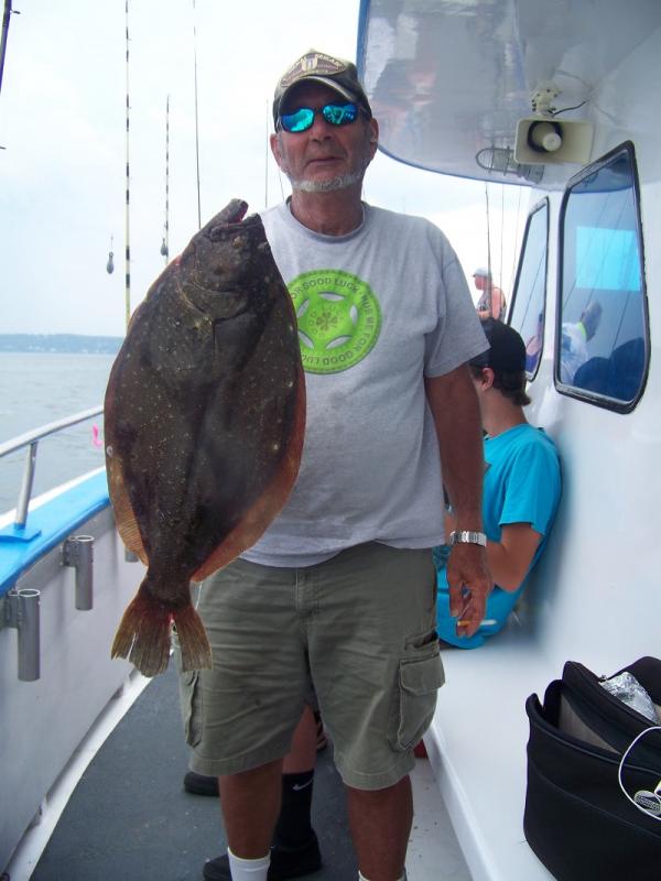 Had a couple beauties yesterday including one of our Old Deck hands Stash's pool winning 8.5 pound Fluke. Found fish every where we went and it was Hot as hell! Some Great fish coming in once again.